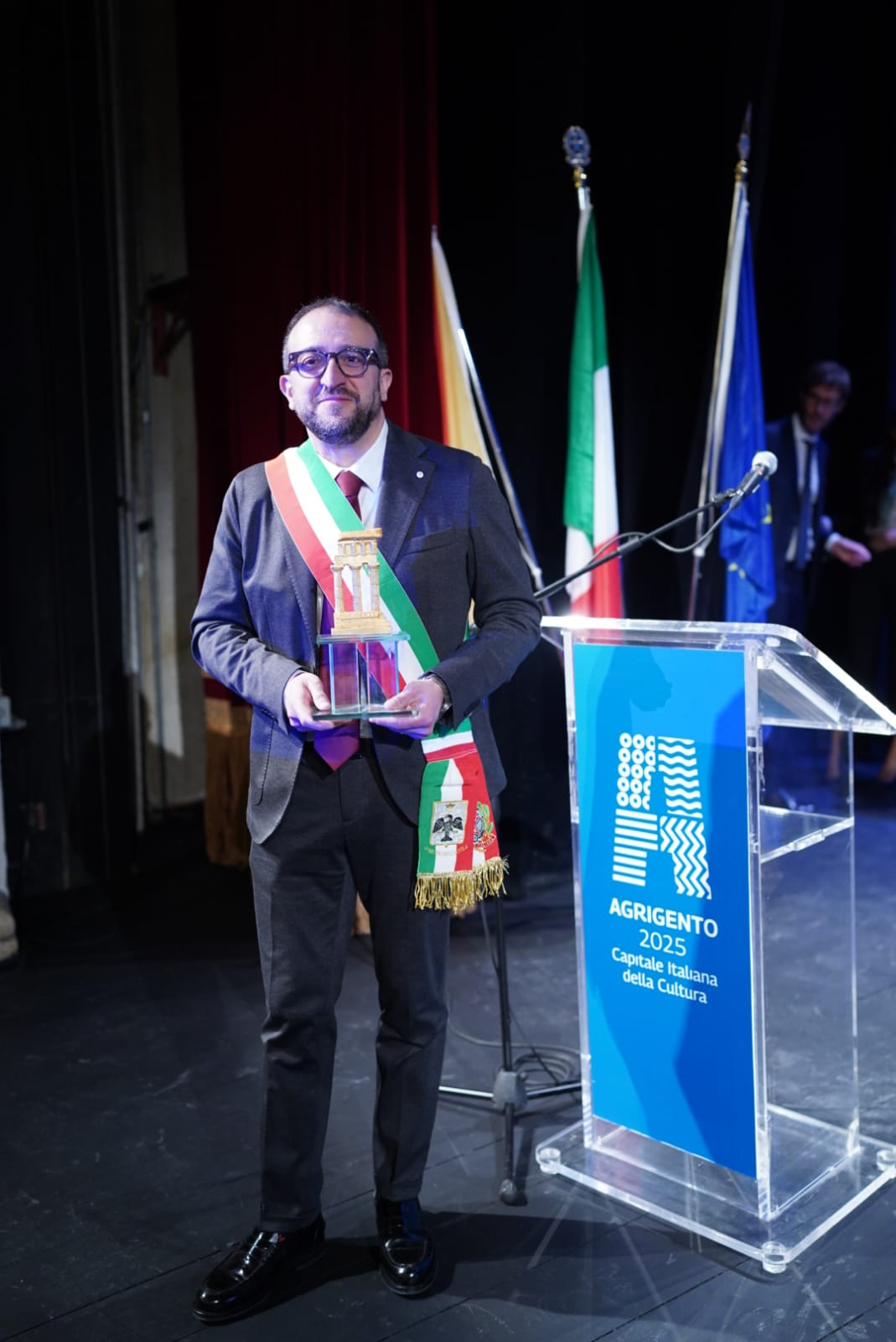 Il sindaco dell’Aquila, Pierluigi Biondi, ha partecipato lo scorso 10 gennaio, al Teatro Luigi Pirandello, alla cerimonia ufficiale di chiusura di Agrigento Capitale italiana della Cultura 2025 e al contestuale passaggio di consegne con L’Aquila, insignita del titolo per il 2026.