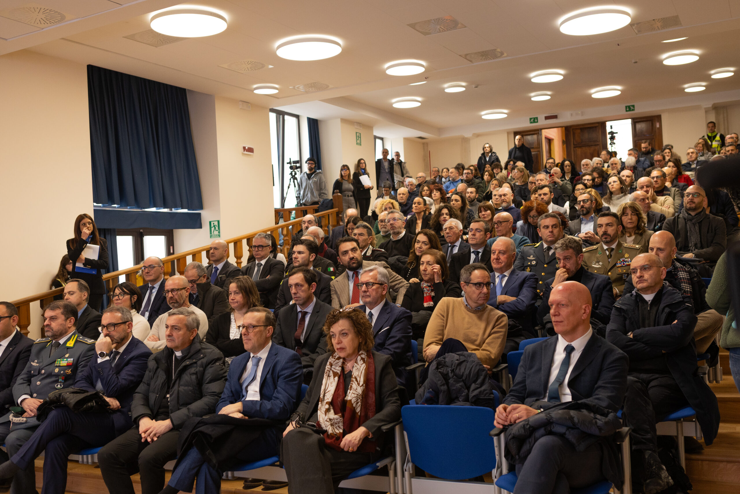 La scelta dell’Auditorium della Scuola della Guardia di Finanza di Coppito come sede della cerimonia inaugurale racconta, da sola, una parte fondamentale della storia recente dell’Aquila. In quei luoghi, all’indomani del terremoto del 2009, si concentrarono l’emergenza, l’accoglienza degli sfollati e il coordinamento delle prime risposte alla tragedia che colpì la città e il suo territorio. Fu anche il luogo del G8 proprio nel luglio di quello stesso anno. L’Auditorium, chiuso dal 2019, torna alla comunità, peraltro, dopo un lungo periodo di restauro.